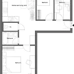 El apartamento de 80 m² está ubicado en el distrito Petrzalka, a 2 km de la Plaza Mayor. Situado a unos 10 minutos en coche de la Catedral de San Juan de Mata y San Félix de Valois, este apartamento se encuentra también a unos cuantos pasos de Farnost povysenia svateho kriza.